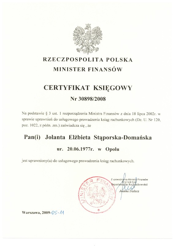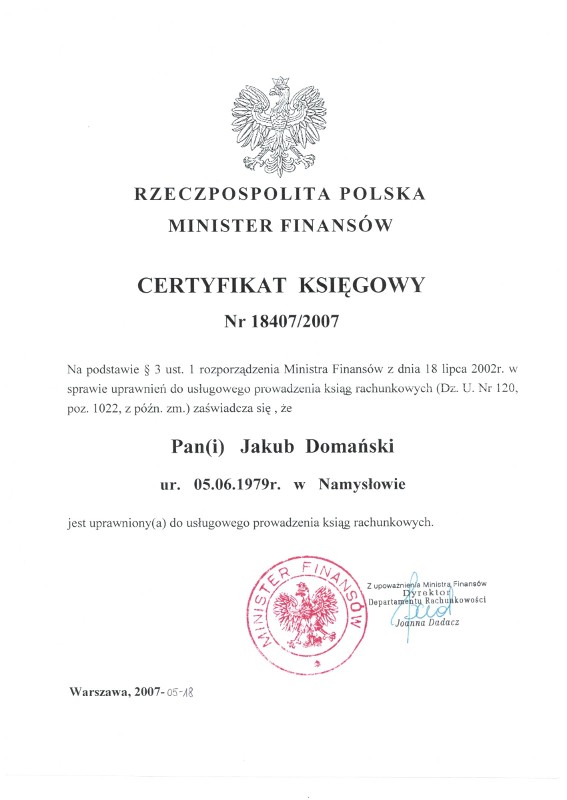 Biuro Rachunkowe "Domańscy" świadczy usługi w zakresie prowadzenia księgowości oraz spraw kadrowo-płacowych małych i średnich przedsiębiorstw. Biuro tworzy kadra specjalistów z wieloletnim doświadczeniem, która stale podnosi swoje kwalifikacje zawodowe. Nasze usługi cechuje profesjonalizm, staranność, zaangażowanie oraz indywidualne podejście do klienta. Posiadamy certyfikat księgowy Ministra Finansów, a nasza działalność objęta jest ochroną ubezpieczenia od odpowiedzialności cywilnej. Dzięki nam Klient może skupić się na prowadzeniu przedsiębiorstwa, mając pewność, że prowadzenie rozliczeń podatkowych powierzył profesjonalistom.